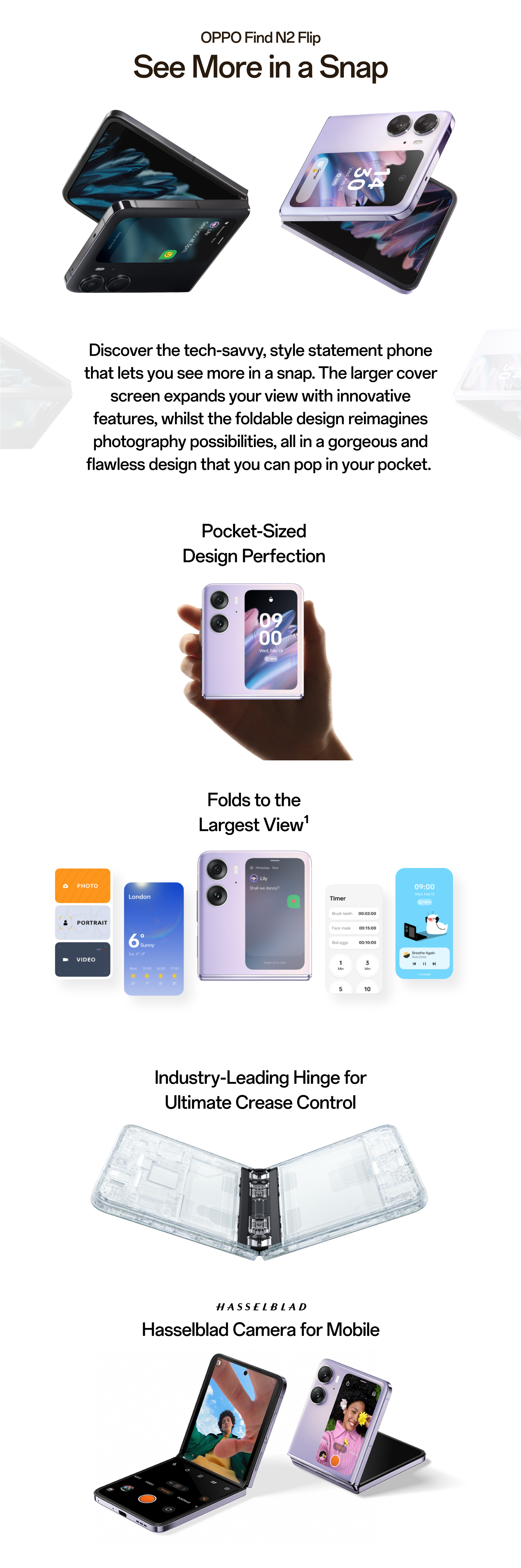 Discover the tech-savvy, style statement phone that lets you see more in a snap. The larger cover screen expands your view with innovative features, whilst the foldable design reimagines photography possibilities, all in a gorgeous and flawless design that you can pop in your pocket.