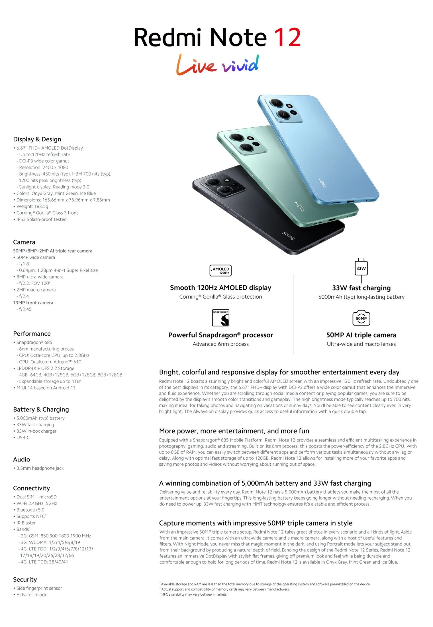 [2023型号]小米红米Note 12 4G(6GB+128GB)*新加坡保修套装*